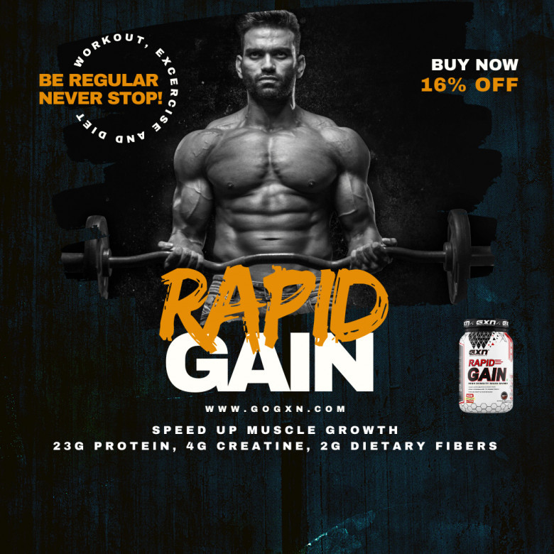 Rapid Gain is commonly used to intake more Calories with balanced amount of Protein. It Boosts Energy Level and enhances Muscle Mass. Rapid Gain Mass Gainer is highly beneficial in case of Gaining Weight Faster. Order online from GXN website with Free Shipping.