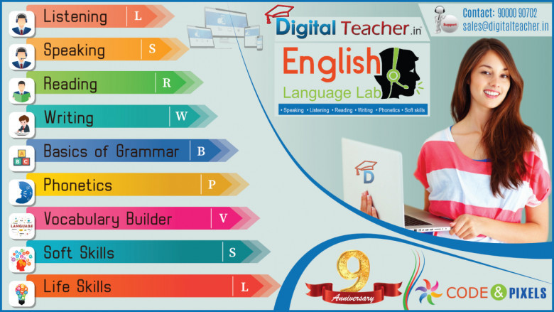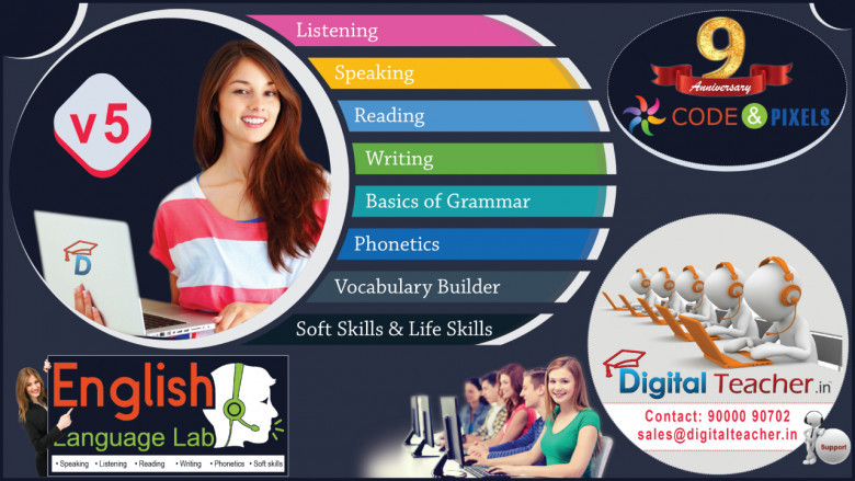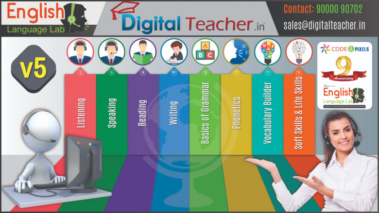 Digital Teacher English Language Lab not only enhances vocabulary but also focuses on the finer shades of language. English Language Lab focuses on many areas such as pace of speech, MTI, vocabulary, grammar, phonetics, intonation, pronunciation which will make you an expert and build your confidence.