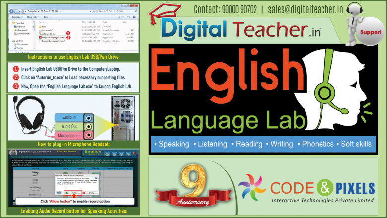 Digital language lab in Hyderabad is a product of Digital Teacher; the software help learners improve their English reading, listening and speaking skills quickly and easily. English language lab is designed according to the CEFR standards in learning.